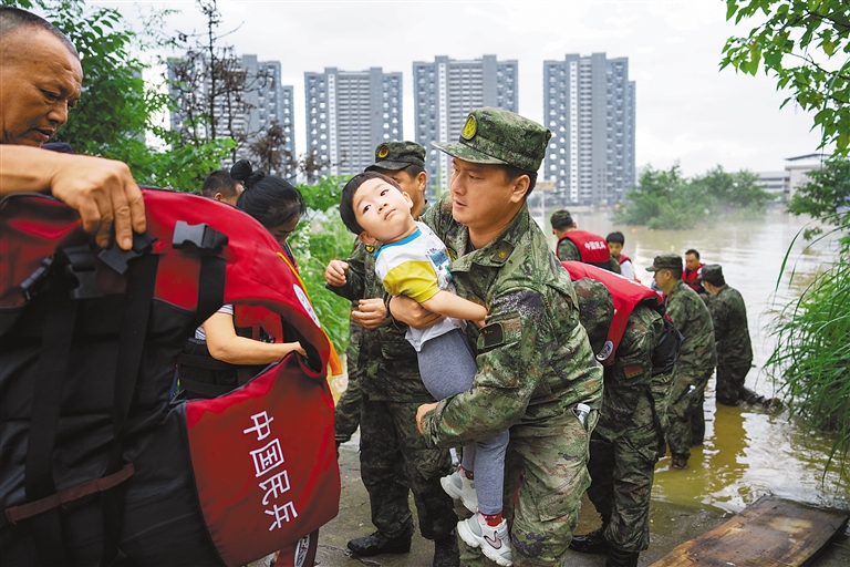 从湖南岳阳平江、岳阳华容团洲垸,到衡阳南岳区寿岳乡岳林村,再到涓水的湖南湘潭县易俗河镇决堤处与湘潭县河口镇决堤处,这是边防一个月来的第五个救灾现场。