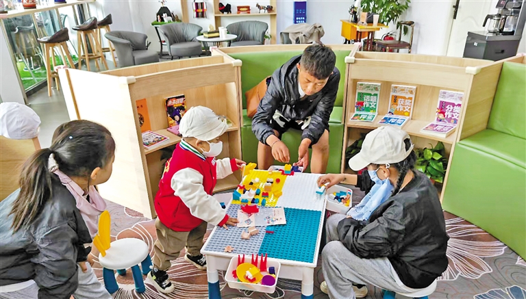 图为儿童在鲁固社区党群服务V站做游戏。本报记者 央金 摄