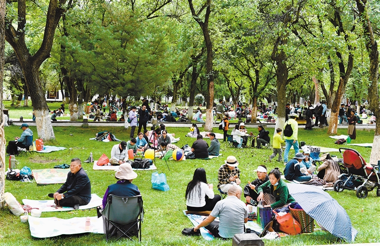 图为市民群众在罗布林卡过林卡。本报记者 旦增兰泽 摄