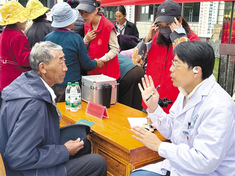 义诊中,医生们详细了解群众的健康状况,为他们量血压、听诊心肺,细致分析病因,免费发放药品,进行现场检查诊疗,根据群众的身体状况给予治疗建议。有的群众还携带病历、化验结果等材料现场咨询,医生们都逐一耐心地进行解答,得到了群众的一致赞誉。驻村工作队队员在群众与医生间耐心细致开展翻译等服务工作,充分发挥桥梁纽带作用。