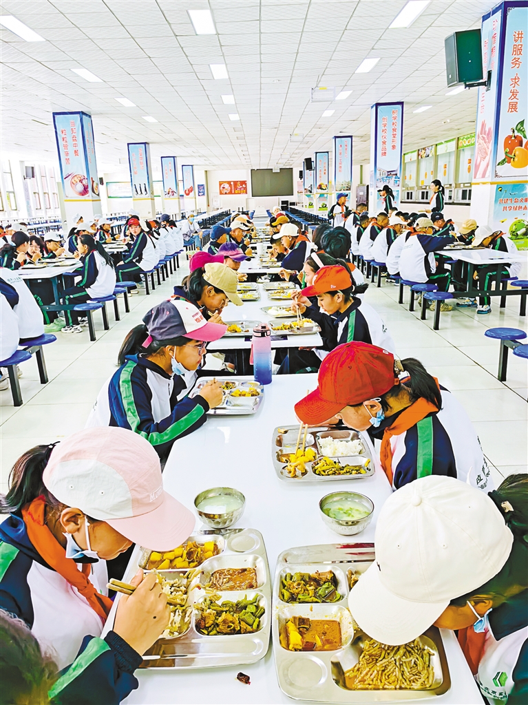图为拉萨北京实验中学新生在学校食堂用餐。本报记者 央金 摄