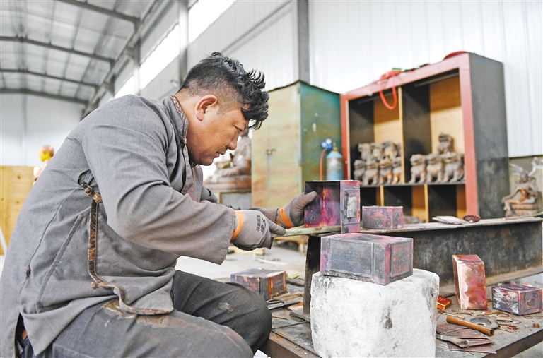 位于拉萨市达孜区的西藏罗占民族手工艺发展有限公司是西藏自治区白纳锻铜技艺传习基地,为了让白纳锻铜技艺后继有人、发扬光大,近年来,公司将这项非遗技艺运用于日常生活用品制作、文创产品开发,并结合当地旅游业特点,申请了白纳锻铜技艺传习基地3A级旅游景点,让更多人了解白纳锻铜技艺,将白纳锻铜手工艺品带入旅游这个大市场。