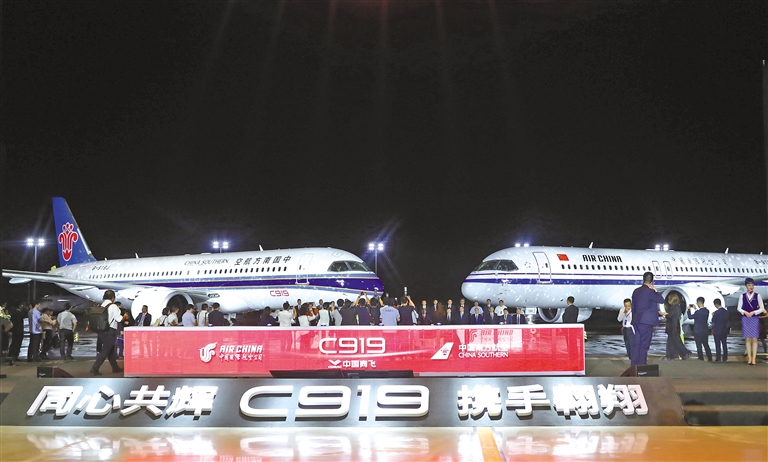 8月28日,中国国际航空公司和中国南方航空公司在中国商飞总装制造中心浦东基地同时接收首架C919飞机。这标志着C919飞机即将开启多用户运营新阶段。