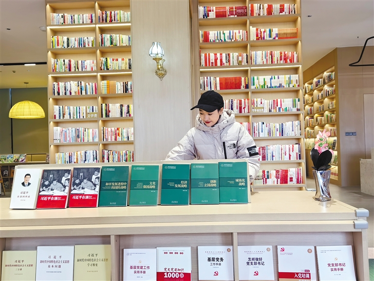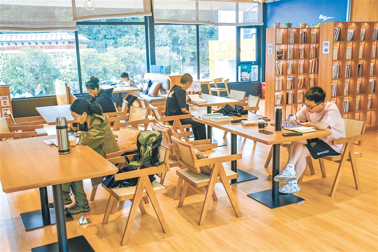 图为那曲籍高校毕业生在“温暖嘉·色尼城市书房”(嘉兴市在那曲援建的首座城市书房)的工作场景。本报记者 万靖 摄