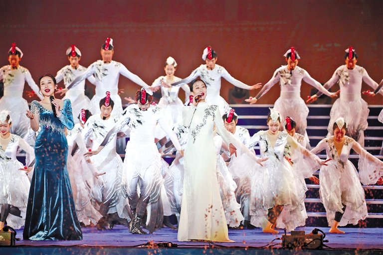 图为在湖北省人民政府、山南市人民政府联合主办的2023雅砻文化旅游节上,来自湖北的演职人员以湖北、山南两地特色文化为素材表演的歌舞节目。 本报记者 丹增平措 本报通讯员 次仁龙布 摄
