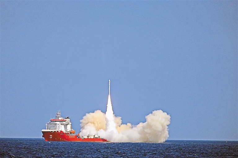 图为8月29日13时22分,我国太原卫星发射中心在山东附近海域成功发射谷神星一号海射型遥三运载火箭,搭载发射的云遥一号15星-17星、吉天星A-03星、苏星一号01星、天辅高分二号卫星顺利进入预定轨道,飞行试验任务获得圆满成功。