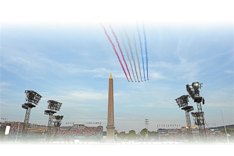 8月28日,在巴黎协和广场拍摄的开幕式现场。 新华社记者 张铖 摄