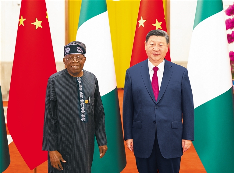 习近平指出,尼日利亚是具有重要影响的非洲大国,拥有巨大人口规模和发展潜力。建交半个多世纪以来,中尼始终相互尊重、平等相待,走出一条联合自强、合作共赢之路。近年来,两国在中非合作论坛框架内共同实施了一大批示范性、战略性合作项目。中国正在进一步全面深化改革、推进中国式现代化,这将为中尼关系发展带来更多机遇。