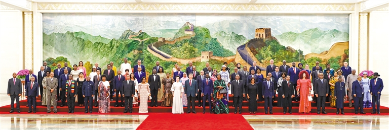 9月的北京,秋高气爽。雄伟的人民大会堂内,中国国旗和中非合作论坛成员国国旗以及非洲联盟旗帜交相辉映。