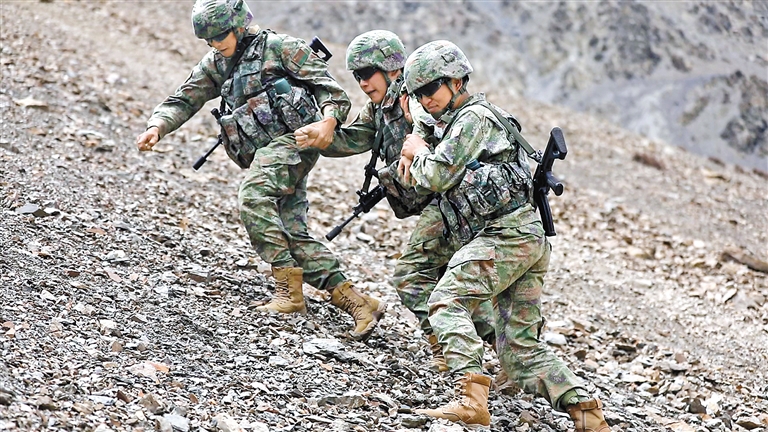 那年,谭民许第一次参加巡逻,两侧都是深不见底的悬崖。在爬一处陡坡时,有些缺氧的他,注意力随之松懈,一脚踩到了碎石上,好在有绑在其他官兵身上的安全绳,这才幸免于难。