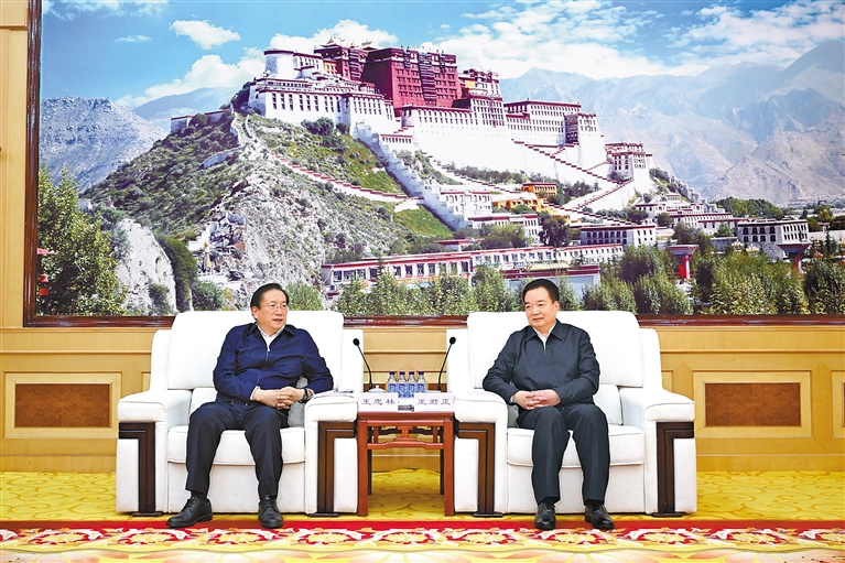 (下转第二版)(紧接第一版)他说,党的十八大以来,在以习近平同志为核心的党中央坚强领导下,西藏自治区认真贯彻新时代党的治藏方略,全力抓好“稳定、发展、生态、强边”四件大事,取得了长治久安和高质量发展的显著成效,展现出守边强边的大担当、矢志发展的大气魄、增进团结的大智慧、兴边富民的大情怀,我们由衷敬佩。对口支援西藏山南,是湖北义不容辞的重大政治责任。30年来,湖北与西藏跨越山海心手相牵,对口支援工作结出累累硕果,两地人民结下深厚情谊。我们将深入贯彻习近平总书记关于西藏工作的重要指示精神,落实第四次对口支援西藏工作会议部署,坚持精准援藏、系统援藏、长期援藏,以更强的政治责任感和使命感持续深化产业援藏、民生援藏、智力援藏等工作,在科技、生态、文旅等更宽领域加强双方务实合作,更深层次推动各民族交往交流交融,为加快建设社会主义现代化新西藏作出新的更大贡献。