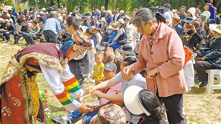 现场设置了工布藏族服饰比赛、传统美食体验及农特产品试吃、藏骰体验等活动。一场别开生面的非遗与美食的碰撞,让市民、游客尽享“文化大餐”。来自巴宜区四镇三乡的荞麦饼、酸奶酱、藏香猪、蓝莓、玫瑰茶等出现在传统美食体验及农特产品试吃活动中,吸引不少市民、游客驻足品尝,近距离享受着非遗带来的韵味与魅力。