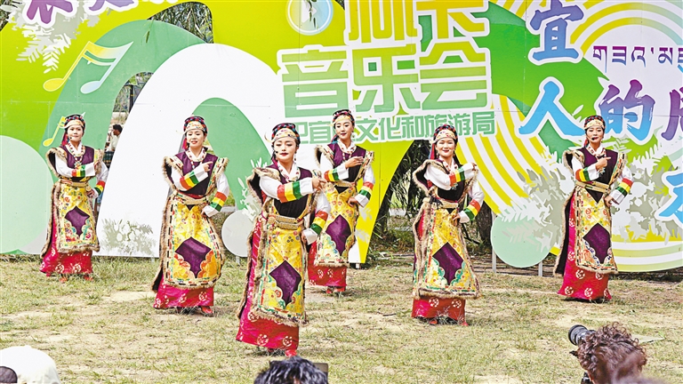 林卡主题音乐会舞台设立在草坪上,显得更为温馨和接地气,随着米纳羌姆、工布箭歌、工布民歌等非遗表演轮番上演,让市民、游客在浓郁的文化氛围里感受传统民俗文化独特魅力和丰富的文化内涵。