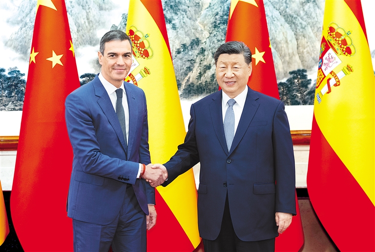习近平指出,当今世界变乱交织,中国和西班牙都是具有责任感和使命感的国家,都倡导多边主义和自由贸易。中方愿同西班牙扩大面向全球南方的第三方市场合作,加强在联合国、二十国集团等国际组织中的沟通配合,为世界和平稳定和人类进步事业注入更多正能量。