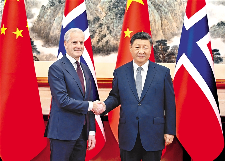 习近平强调,回顾中挪关系70年历程,友好和合作是主旋律。历史经验告诉我们,要保持两国关系平稳健康发展,最重要的是坚持相互尊重、求同存异,包括尊重彼此核心利益、照顾对方重大关切。中挪两国经济互补性强,各领域合作成果丰硕。双方可以结合各自优势,不断扩大绿色环保、能源转型、海事航运、农渔产品、电动汽车等领域务实合作,加强教育、科技、文化、旅游、冬季运动等领域合作,密切人员往来特别是青年交流。中挪在维护世界和平和安全、应对气候变化、保护生物多样性等全球性挑战方面有广泛共识,中方愿同挪方加强在联合国等多边平台沟通和协作,践行真正的多边主义,推动平等有序的世界多极化、普惠包容的经济全球化。希望挪方为推动中欧关系健康稳定发展发挥积极作用。