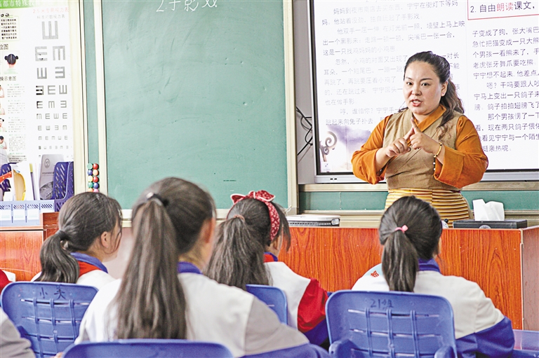 在昌都市特殊学校的课堂上,有一位老师以她独特的方式诠释着教育的意义。她就是泽巴卓嘎,一位被孩子们亲切称为“心灵引路人”的特殊学校教师。课堂上,她像一位舞者,优雅灵动,用手语与听障的孩子们交流,仿佛在传递一曲无声的乐章。