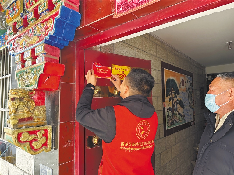 图为八一街道工作人员为辖区党员中心户挂牌。本报记者 次仁片多 摄