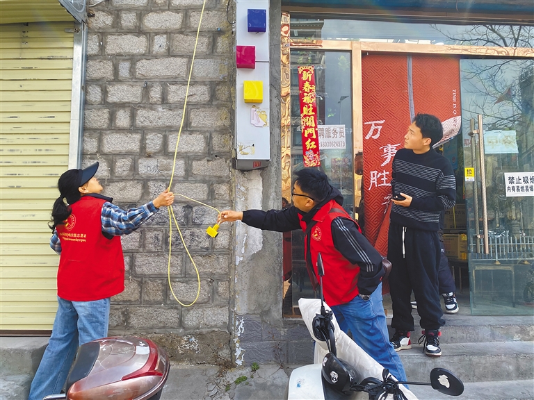 图为八一街道工作人员检查治理“飞线充电”。本报记者 次仁片多 摄