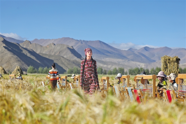 如果说随风摇曳的金色青稞是江孜的“老名片”,那么从雪域高原走向国际奢侈品舞台的氆氇已然成为“新名片”。
