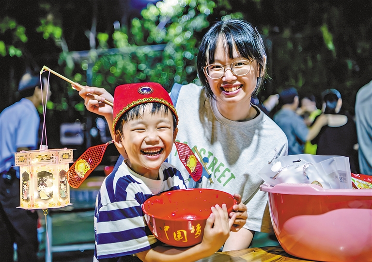 图为9月14日晚,福建厦门同安区的古龙御园小区举行“中秋博饼晚会”,小区居民展示在活动中获得的小礼品。 新华社记者 魏培全 摄