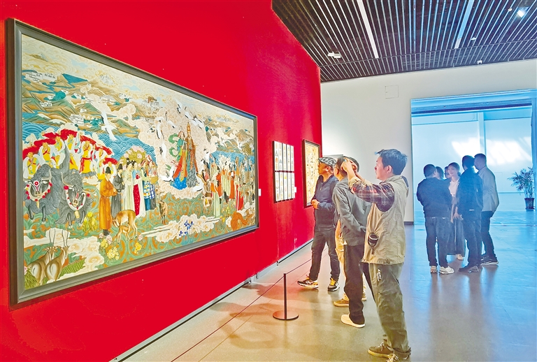 图为川藏两地的美术家们和观众在参观画展。本报记者 潘璐 摄