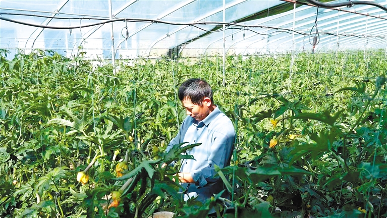 图为净植茂藤农业科技有限公司现代农业示范园区种植户李守远在自家大棚查看蔬菜长势。本报通讯员 桑茂鹏 本报记者 王超 摄