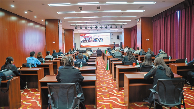 活动伊始,中国人寿西藏分公司总经理丁友源致辞,他讲到:“西藏国寿始终坚持以人民为中心的发展理念,积极响应国家普惠金融号召,致力于为西藏地区的中小微企业提供全方位、定制化的风险保障解决方案。作为西藏地区金融机构的一员,我们深感责任重大,我们将以‘金融教育宣传月’活动为契机,紧扣‘雪域护航,国寿担当’主题,创新宣传方式,积极开展各类线上、线下宣传,提高宣传效果,向大众宣传普及金融知识,为西藏各族群众提供更加专业、优质的金融服务。”丁友源的发言,不仅展现了西藏国寿作为金融央企在藏机构对于社会责任的深刻认识,也彰显了西藏国寿在金融服务领域的坚定决心。