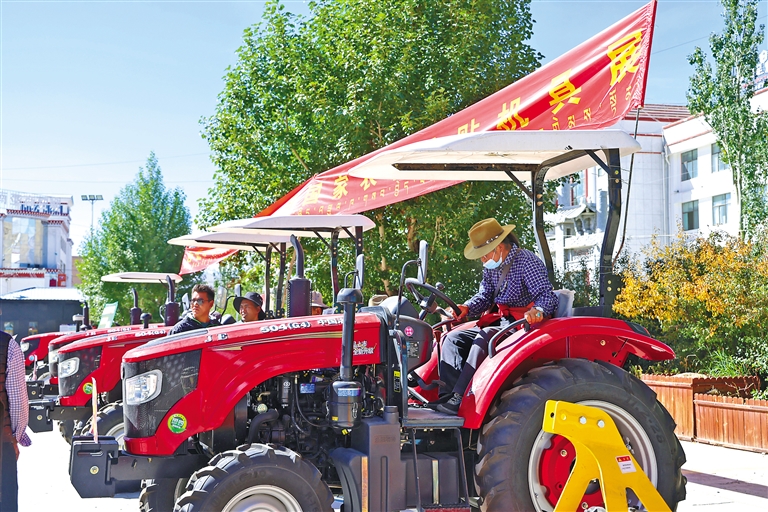 9月22日上午,阿里地区在普兰县文化广场举办了以“学用‘千万工程’ 礼赞丰收中国”为主题的第七届“中国农民丰收节”系列庆祝活动。活动现场热闹非凡,具有民族特色的精彩节目轮番上演;在农机具展示区,各种先进的农机具排列整齐;特色农产品展销区,各县特色农产品精彩亮相,吸引了众多过往群众。
