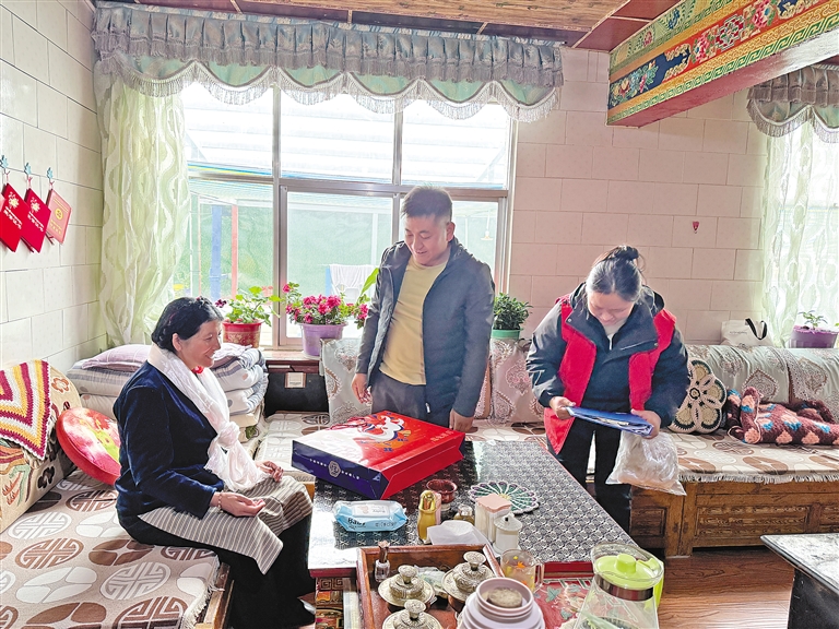 图为亚东县帕里镇工作人员在民族团结通婚家庭开展走访慰问。 (本版图片均由本报记者 扎西顿珠 杨子彦 旦增嘎瓦 摄)
