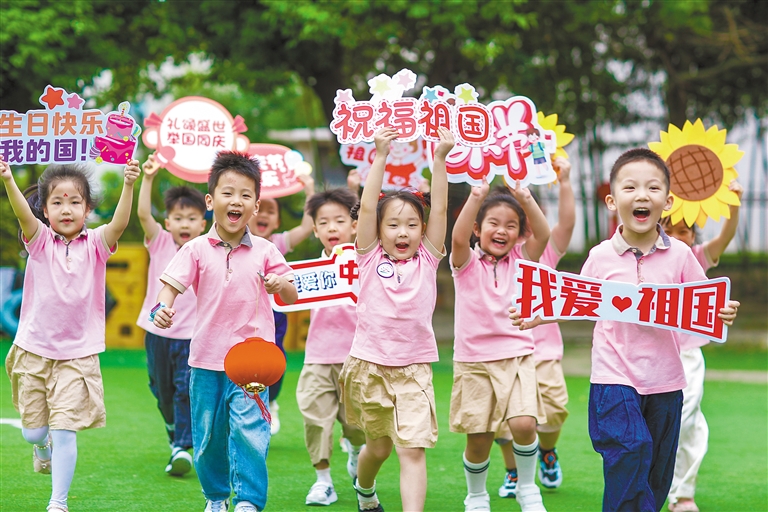 国庆节临近,多地幼儿园、小学举办形式多样的国庆主题趣味活动,欢乐迎国庆。
