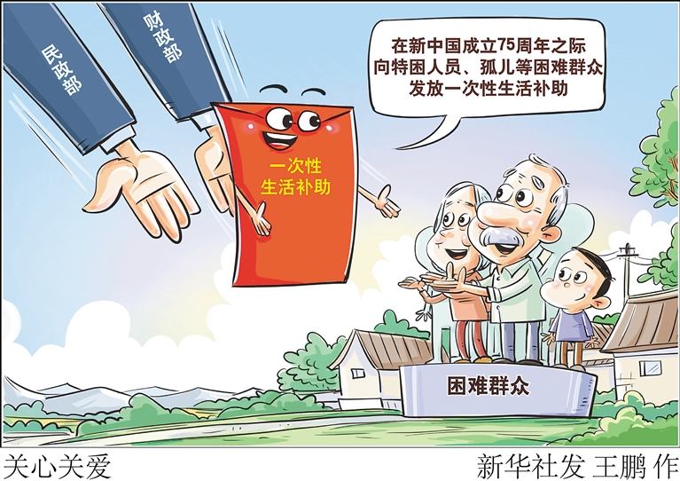 记者9月25日从民政部获悉,近日,经国务院同意,民政部、财政部联合部署在新中国成立75周年之际,向特困人员、孤儿等困难群众发放一次性生活补助。