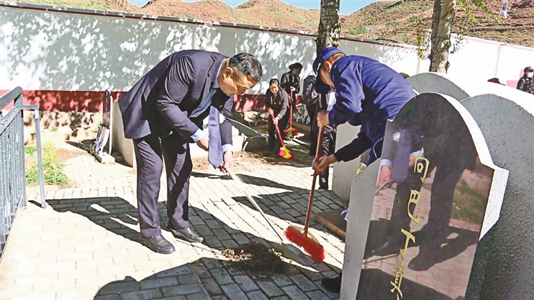 9月30日,昌都市贡觉县在革命烈士陵园开展纪念活动。仪式结束后,全体人员在烈士陵园擦拭墓碑、清扫墓区。参加活动的各族各界代表纷纷表示,将铭记革命先烈的丰功伟绩,传承红色基因,为建设美好家园不懈奋斗。