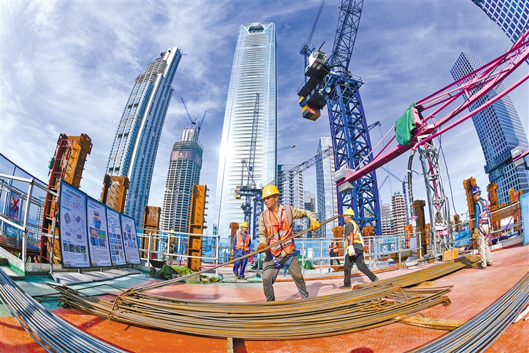 图①:10月3日,中建五局的建设者在深圳湾超级总部基地C塔项目建设现场施工。