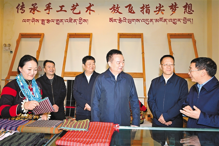 10月6日至7日,自治区党委书记王君正在林芝市巴宜区、米林市调研。这是王君正来到米林市南伊珞巴民族乡才召村,详细了解乡村振兴、群众增收、传统技艺传承与发展、民族团结进步等工作。 本报记者 旦增西旦 摄