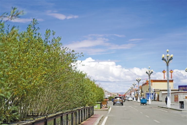 图为绿意盎然的措勤县城街道。本报记者 洛桑旦增 摄