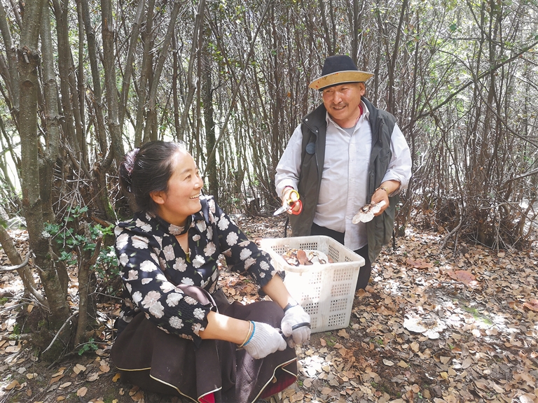热登从小在这片青冈林长大,和高山树林打了一辈子交道,除了挖松茸、摘菌子、找药材之外,没想到林下经济还能发展得这么红火。