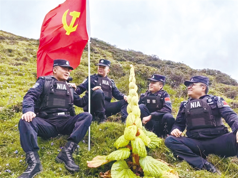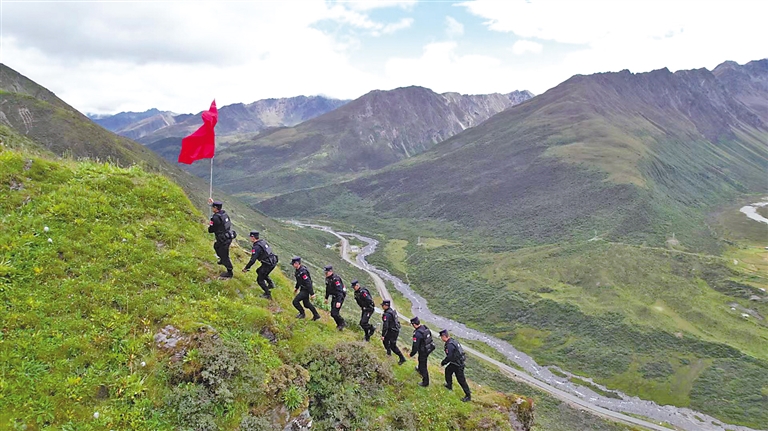?联合巡逻队成员在巡逻途中。本报通讯员 索朗扎西 摄