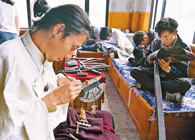 昌都市卡若区嘎玛乡位于扎曲河上游,群山环绕、风光秀丽。嘎玛乡被誉为“民族手工艺之乡”,当地群众世代从事唐卡绘画、金属锻造、石刻等,几乎家家有工匠、户户有传人。如今,在党和政府的政策扶持下,嘎玛乡的手工艺品渐渐走出山沟,群众也因此走上了致富路。
