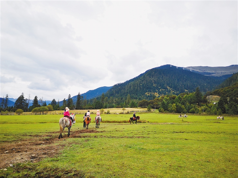 图为游客在林芝市鲁朗小镇体验骑马。本报记者 周辉 摄