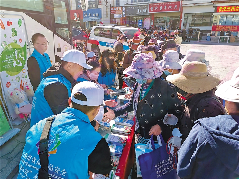 除了在社区广场举办活动,山南市还通过电视、广播、报纸、网络等媒体,广泛宣传食品安全知识和法律法规。在“食品安全宣传周”等活动期间,山南市共举办了各类主题宣传活动10余场次,包括“你点我检,服务惠民生”“你点我查”“你送我检”以及食品安全知识进校园、进社区等多类场所活动,现场参与咨询人员达2000人次,发放宣传资料3500份。