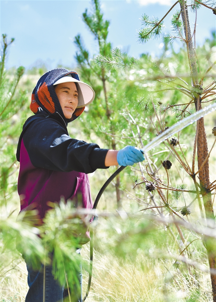 左图:山南市贡嘎县村民在给树木浇水(2024年6月3日摄)。新华社记者 晋美多吉 摄