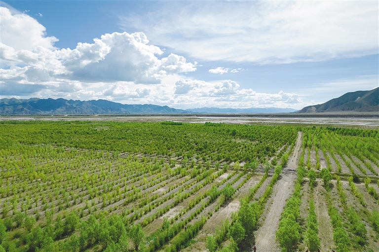 夏秋时节,沿着雅鲁藏布江岸边的公路驶入西藏自治区山南市,映入眼帘的是绿树、碧水和蓝天。曾经,这里是西藏有名的沙丘地。