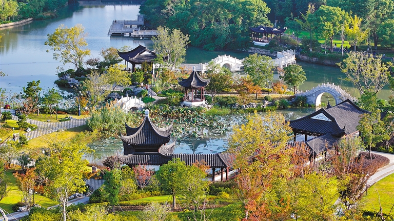 江苏 图为10月31日拍摄的江苏省昆山市亭林园秋景(无人机照片)。新华社发(王须中 摄)