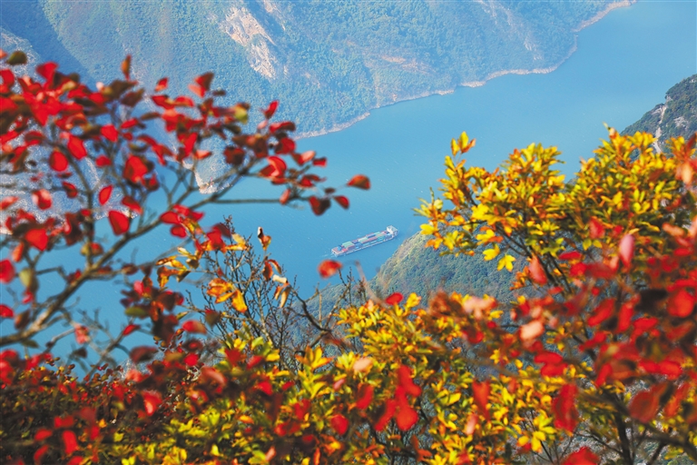 重庆 图为10月30日在重庆市巫山县巫峡神女景区拍摄的红叶映巫峡美景。新华社发(王忠虎 摄)