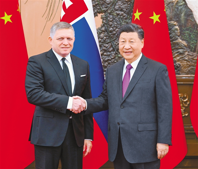 菲佐祝贺中华人民共和国成立75周年,表示,斯方坚定奉行一个中国政策,认为中华人民共和国政府是代表全中国的唯一合法政府。(下转第三版)(紧接第一版)斯方反对任何干涉别国内政的行为,主张尊重各国自主选择的发展道路。此次我携包括多名重要内阁成员和企业家在内的庞大代表团访华,旨在表明斯方对发展对华关系的高度重视和积极意愿。感谢中方给予斯洛伐克公民15天入境免签政策,斯方支持便利两国人员往来,增进相互了解,欢迎更多中国企业赴斯投资,在新能源、基础设施等领域加强合作。斯方赞赏习近平主席提出的三大全球倡议,反对单边主义和霸权主义,愿同中方加强多边沟通协作,推动完善全球治理,促进全人类福祉。斯方愿同中方加强党际交流和治国理政经验交流,积极推动欧盟致力于通过对话磋商妥善处理分歧。