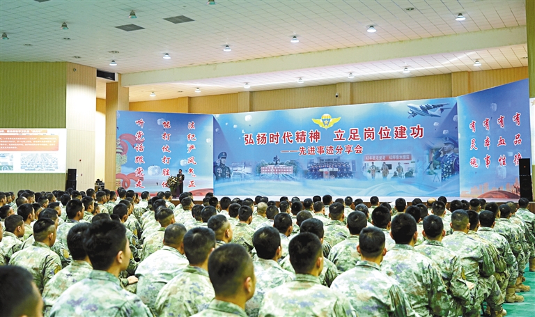 强化典型示范引领,激发干事创业热情。一段段感人述说彰显入伍从军的坚定信念,一幕幕动人画面展现强军奋斗的磅礴力量。近日,西藏军区某部一级军士长王宇受邀赴空降兵某部参加“弘扬时代精神,立足岗位建功”主题先进事迹分享会,为官兵讲述扎根雪域高原的强军故事。