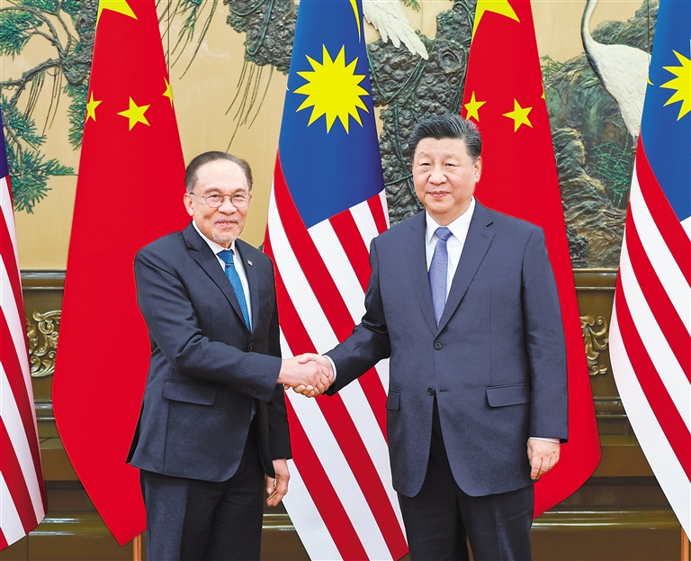 安瓦尔表示,习近平主席提出构建人类命运共同体等重要理念,倡导不同文明包容互鉴,并就引领推动“金砖+”合作提出高屋建瓴的意见建议,体现了对人类文明进步和人民利益福祉的深厚情怀和智慧担当,代表了全球南方的共同愿望和心声。马方对习近平主席的远见和倡议表示赞赏和支持。马来西亚政府致力于进一步深化同中国的全面战略伙伴关系,加强信息技术、数字经济、能源等合作。马方钦佩中方在减贫领域取得的令人赞叹的成就,期待学习借鉴中方治国理政经验。马中在许多重大国际地区问题上理念相同、立场相近,马方坚持战略自主,愿同中方密切多边协作,维护地区和平稳定和发展繁荣。
