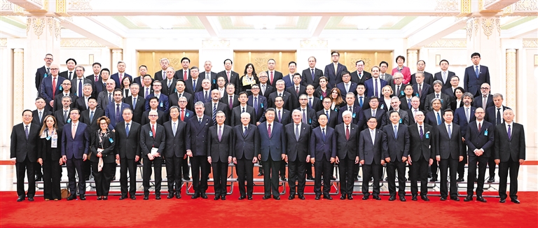 11月8日晚,国家主席习近平在北京同意大利总统马塔雷拉共同会见出席中意文化合作机制大会和中意大学校长对话会的双方代表。这是会见前,两国元首同双方代表合影留念。新华社记者 申宏 摄