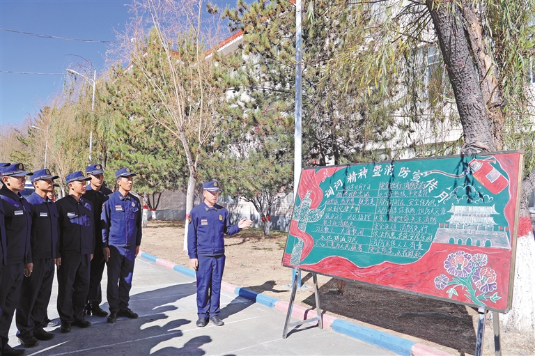 图④:西藏森林消防总队新训大队组织指战员围绕学习践行授旗训词精神暨消防宣传月系列活动创作黑板报。本报记者 刘倩茹 本报通讯员 朱瑞 摄