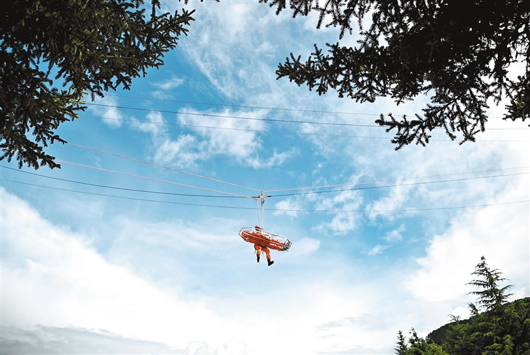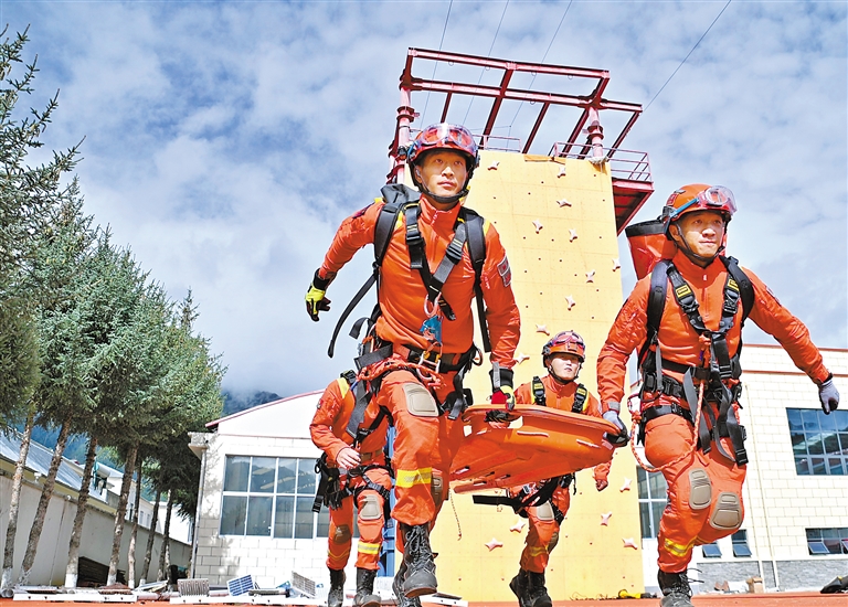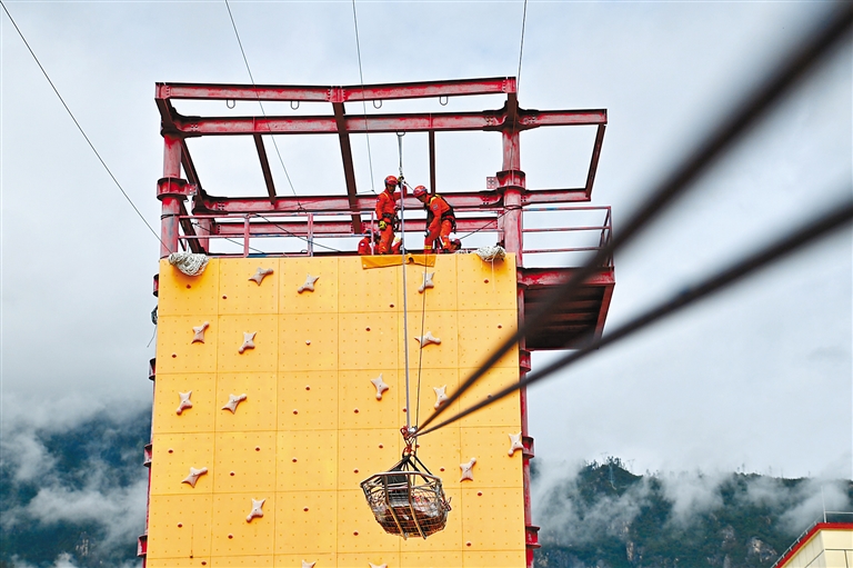 开展斜向救援技术训练。本报通讯员 西绕拉翁 本报记者 谢筱纯 王珊 摄